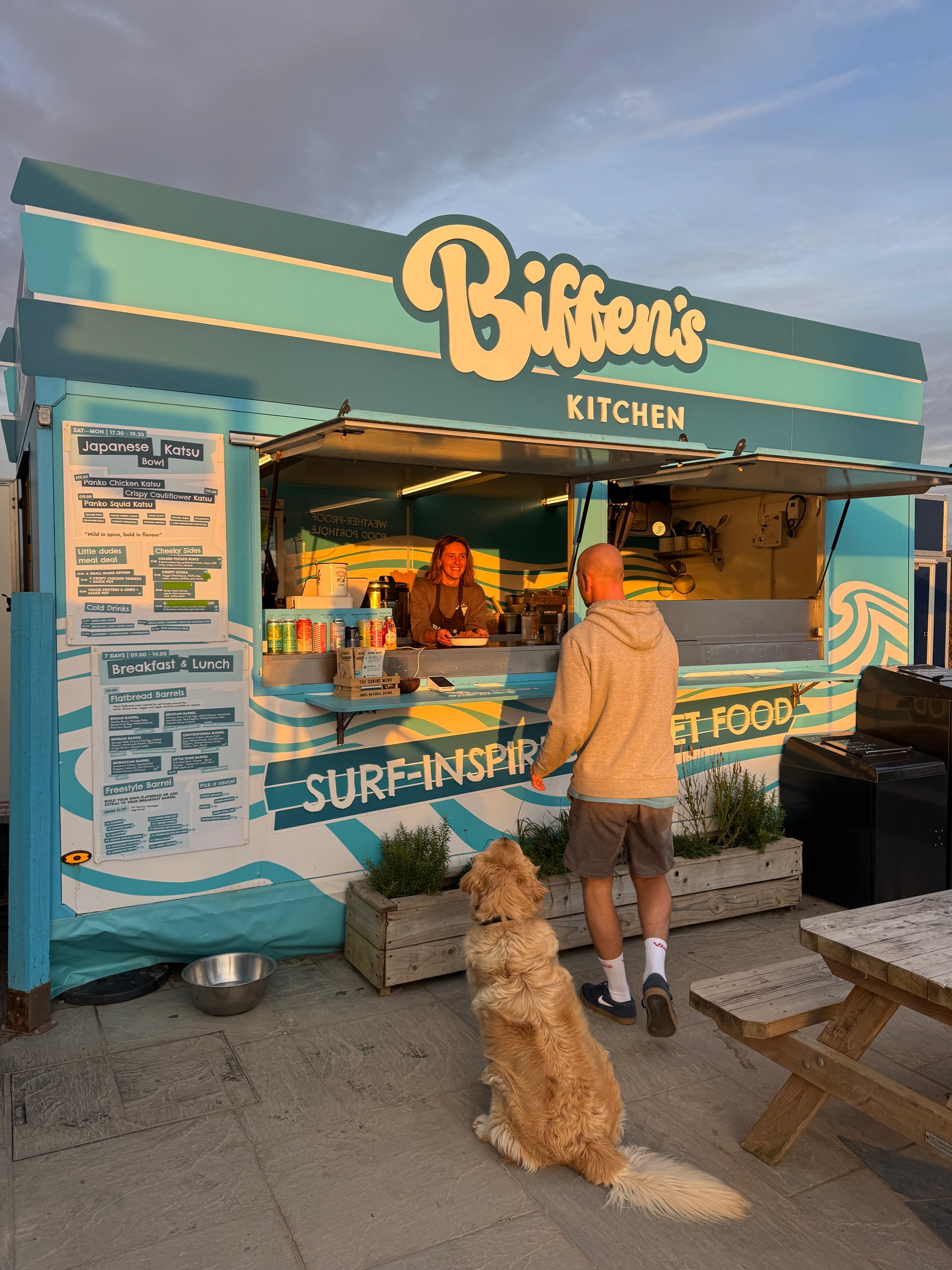 Hey! I’m Biff, and I’m stoked to welcome you to my surf-inspired street food truck right here in Croyde Bay. You can find me and the team at Ocean Pitch Campsite with the epic beach view. Everyone is welcome onsite to enjoy a bite to eat. From the cold shores of Japan, to the warm Mexican waters, my food is a reflection of my travels, my love for bold flavours, and my passion for cooking up epic dishes for you. At Biffen’s Kitchen, it’s all about fresh, local ingredients, vibrant flavours, and fast, friendly service—so whether you’re grabbing a Breakfast Barrel before hitting the waves or tucking into a Katsu Curry after a day of exploring, I look forward to meeting you!